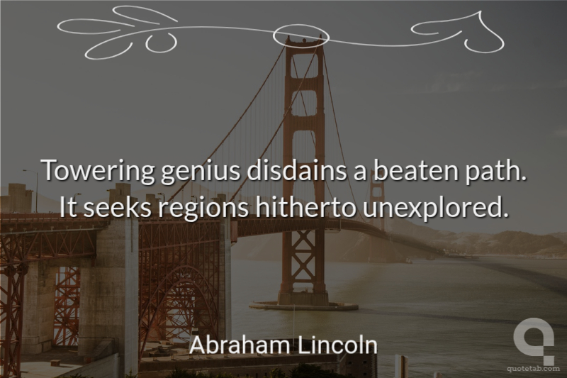 Towering genius...thirsts and burns for distinction; and, if possible, it will have it, whether at the expense of emancipating slaves or enslaving freeman. Abraham Lincoln