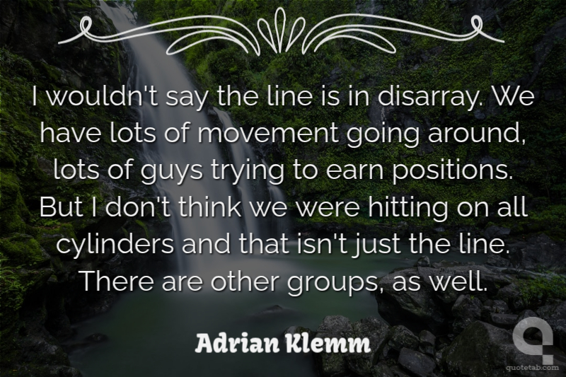 I wouldn't say the line is in disarray. We have lots of movement going around, lots of guys trying to earn positions. But I don't think we were hitting on all cylinders and that isn't just the line. There are other groups, as well. Adrian Klemm