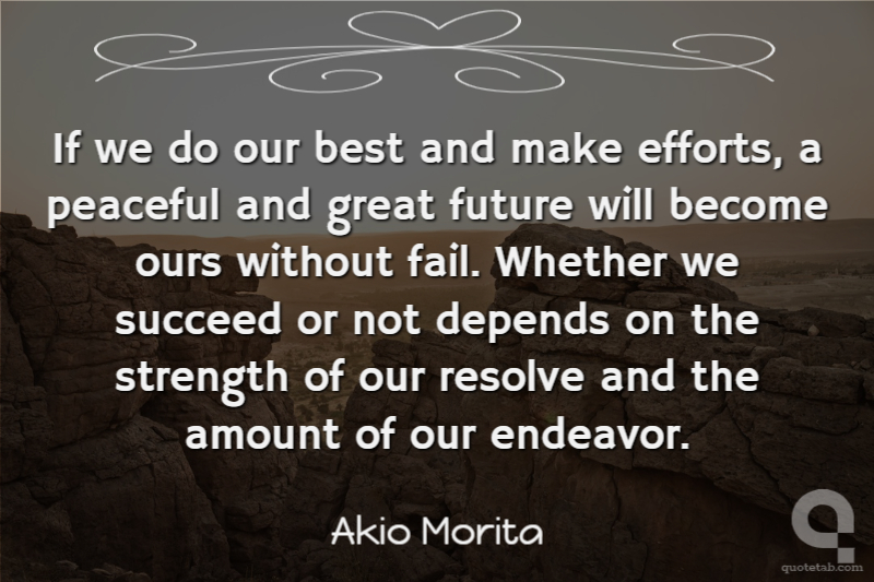 If we do our best and make efforts, a peaceful and great future will become ours without fail. Whether we succeed or not depends on the strength of our resolve and the amount of our endeavor. Akio Morita
