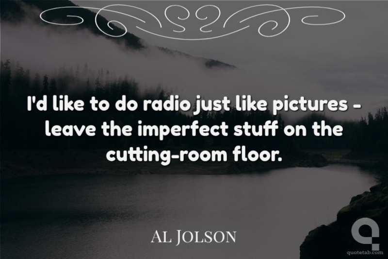 I'd like to do radio just like pictures - leave the imperfect stuff on the cutting-room floor. Al Jolson