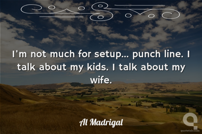 I'm not much for setup... punch line. I talk about my kids. I talk about my wife. Al Madrigal