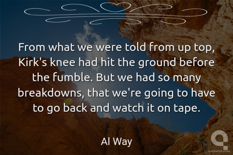 From what we were told from up top, Kirk's knee had hit the ground before the fumble. But we had so many breakdowns, that we're going to have to go back and watch it on tape. Al Way