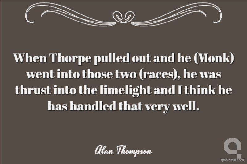 When Thorpe pulled out and he (Monk) went into those two (races), he was thrust into the limelight and I think he has handled that very well. Alan Thompson