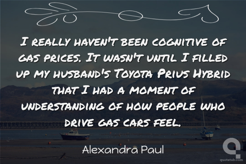 I really haven't been cognitive of gas prices. It wasn't until I filled up my husband's Toyota Prius Hybrid that I had a moment of understanding of how people who drive gas cars feel. Alexandra Paul