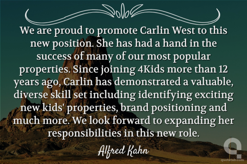 We are proud to promote Carlin West to this new position. She has had a hand in the success of many of our most popular properties. Since joining 4Kids more than 12 years ago, Carlin has demonstrated a valuable, diverse skill set including identifying exciting new kids' properties, brand positioning and much more. We look forward to expanding her responsibilities in this new role. Alfred Kahn
