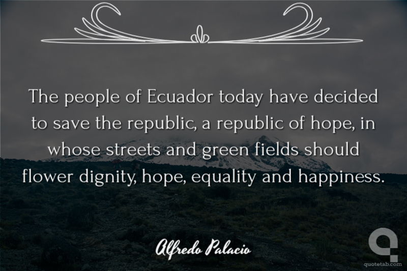 The people of Ecuador today have decided to save the republic, a republic of hope, in whose streets and green fields should flower dignity, hope, equality and happiness. Alfredo Palacio