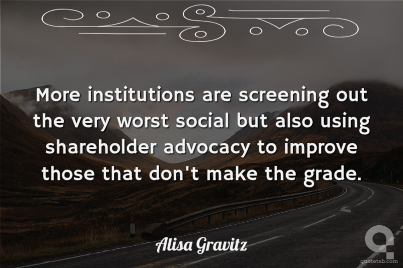 More institutions are screening out the very worst social but also using shareholder advocacy to improve those that don't make the grade. Alisa Gravitz