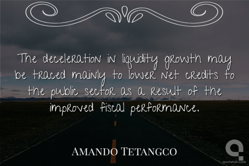 The deceleration in liquidity growth may be traced mainly to lower net credits to the public sector as a result of the improved fiscal performance. Amando Tetangco
