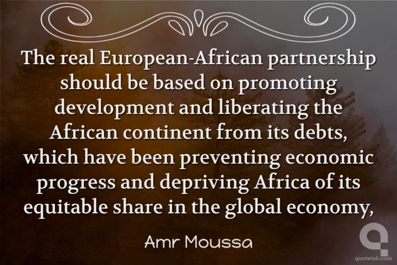 The real European-African partnership should be based on promoting development and liberating the African continent from its debts, which have been preventing economic progress and depriving Africa of its equitable share in the global economy, Amr Moussa