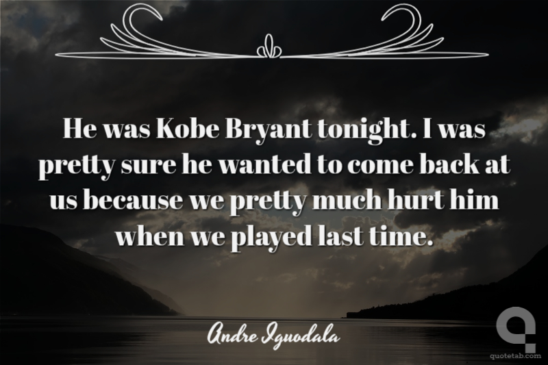 He was Kobe Bryant tonight. I was pretty sure he wanted to come back at us because we pretty much hurt him when we played last time. Andre Iguodala
