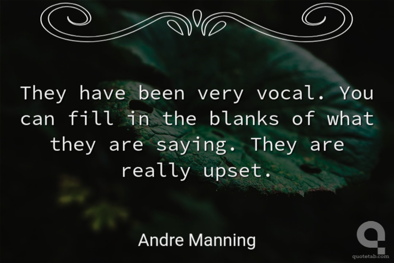 They have been very vocal. You can fill in the blanks of what they are saying. They are really upset. Andre Manning