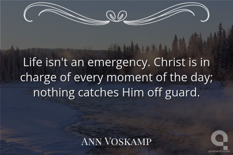 Life isn't an emergency. Christ is in charge of every moment of the day; nothing catches Him off guard. Ann Voskamp