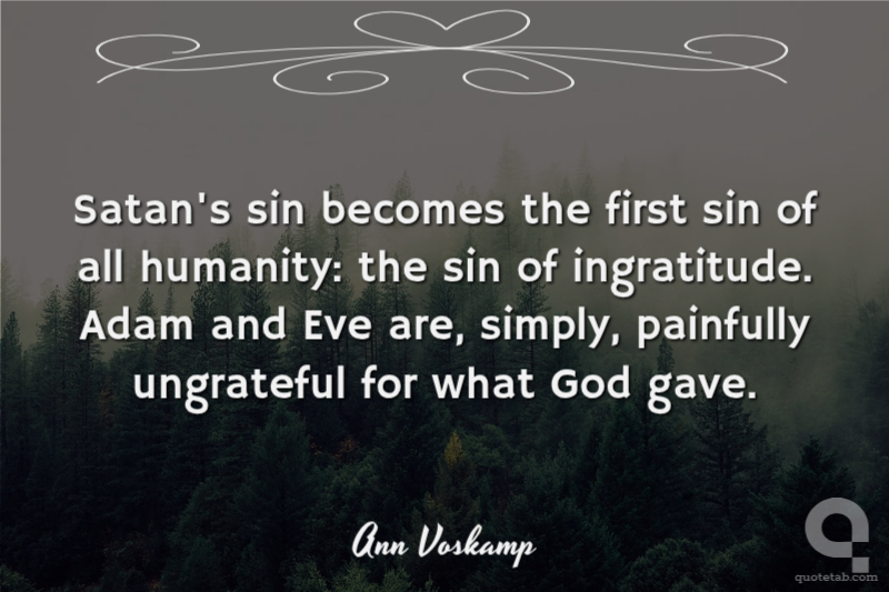 Satan's sin becomes the first sin of all humanity: the sin of ingratitude. Adam and Eve are, simply, painfully ungrateful for what God gave. Ann Voskamp
