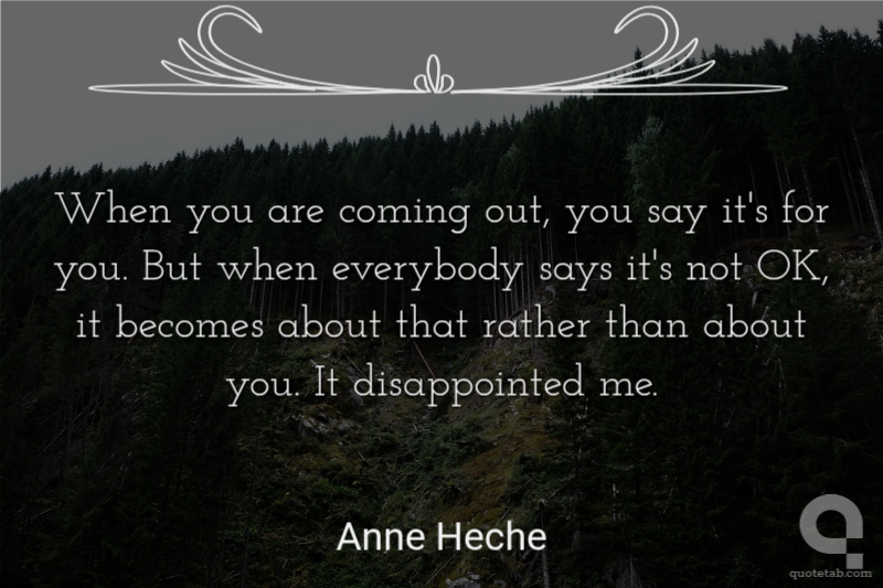 When you are coming out, you say it's for you. But when everybody says it's not OK, it becomes about that rather than about you. It disappointed me. Anne Heche