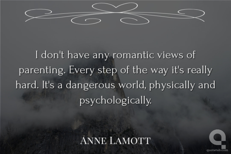I don't have any romantic views of parenting. Every step of the way it's really hard. It's a dangerous world, physically and psychologically. Anne Lamott