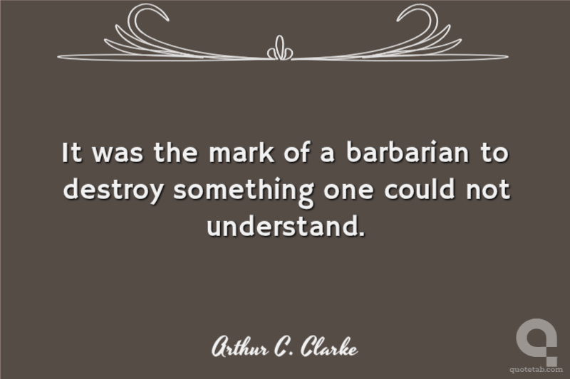 It was the mark of a barbarian to destroy something one could not understand. Arthur C. Clarke