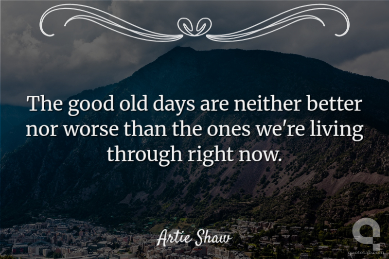 The good old days are neither better nor worse than the ones we're living through right now. Artie Shaw