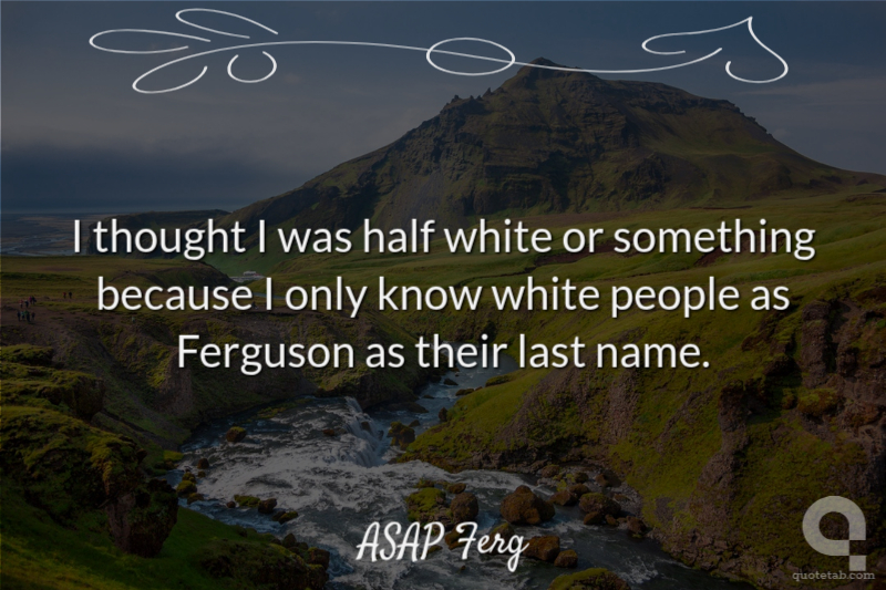 I thought I was half white or something because I only know white people as Ferguson as their last name. ASAP Ferg