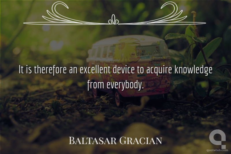 It is therefore an excellent device to acquire knowledge from everybody. Baltasar Gracian