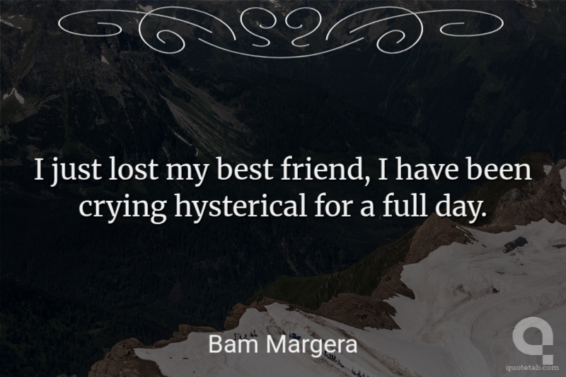 I just lost my best friend, I have been crying hysterical for a full day. Bam Margera
