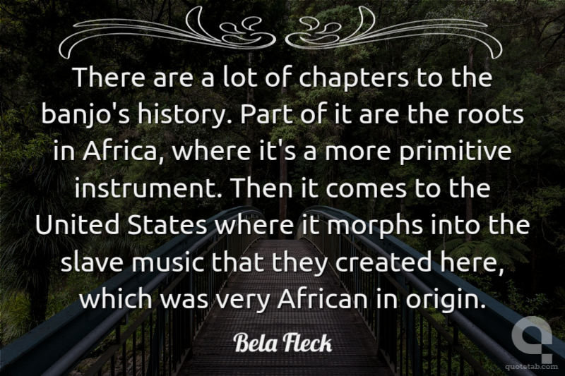 There are a lot of chapters to the banjo's history. Part of it are the roots in Africa, where it's a more primitive instrument. Then it comes to the United States where it morphs into the slave music that they created here, which was very African in origin. Bela Fleck