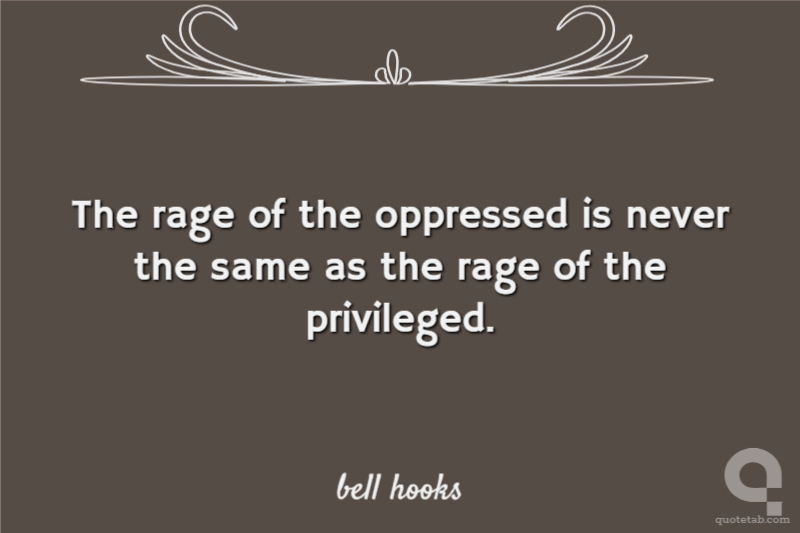 The rage of the oppressed is never the same as the rage of the privileged. bell hooks