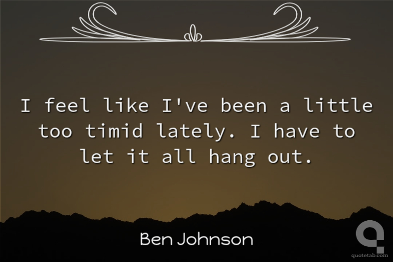 I feel like I've been a little too timid lately. I have to let it all hang out. Ben Johnson