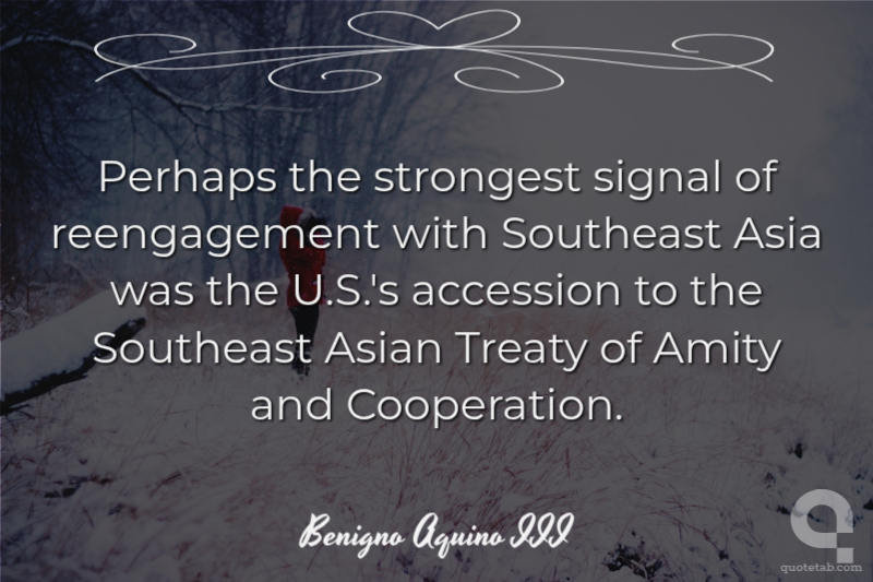 Perhaps the strongest signal of reengagement with Southeast Asia was the U.S.'s accession to the Southeast Asian Treaty of Amity and Cooperation. Benigno Aquino III