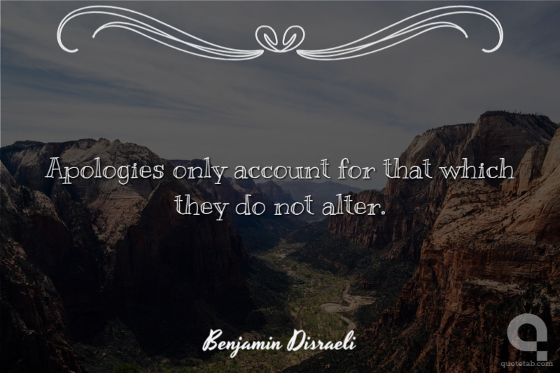 Apologies only account for that which they do not alter. Benjamin Disraeli