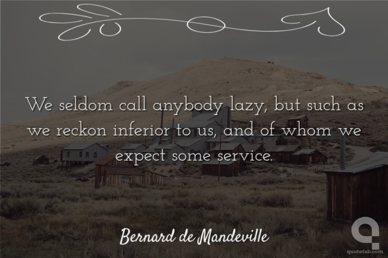 We seldom call anybody lazy, but such as we reckon inferior to us, and of whom we expect some service. Bernard de Mandeville