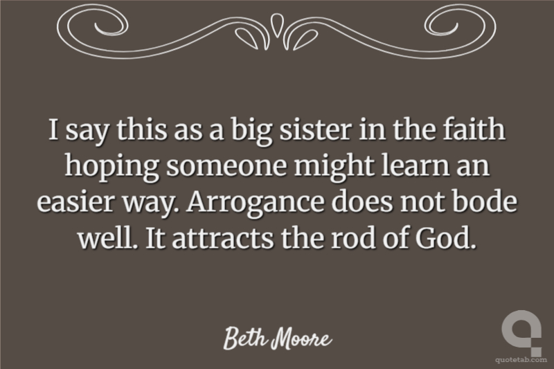 I say this as a big sister in the faith hoping someone might learn an easier way. Arrogance does not bode well. It attracts the rod of God. Beth Moore