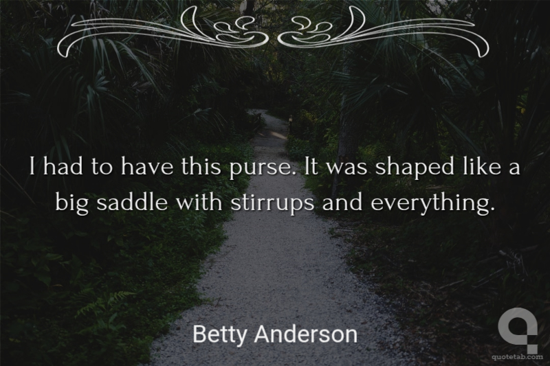 Betty Anderson I had to have this purse. It was shaped like a big saddle with stirrups and everything.