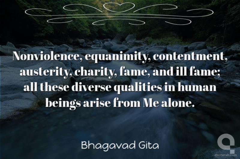 Nonviolence, equanimity, contentment, austerity, charity, fame, and ill fame; all these diverse qualities in human beings arise from Me alone. Bhagavad Gita