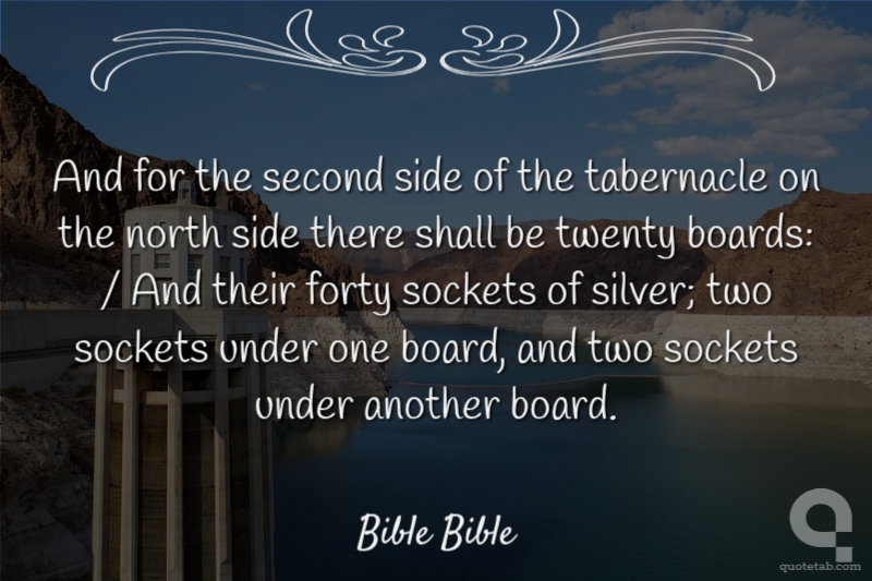 And for the second side of the tabernacle on the north side there shall be twenty boards: / And their forty sockets of silver; two sockets under one board, and two sockets under another board. Bible Bible