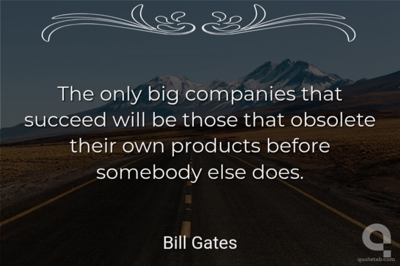 The only big companies that succeed will be those that obsolete their own products before somebody else does. Bill Gates