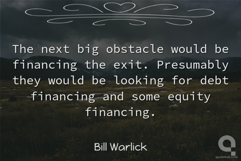 Now that the financing is lined up, I think there will be other parties that come to the fore. Bill Brandt