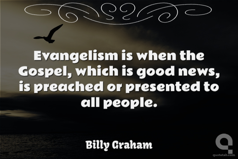 Evangelism is when the Gospel, which is good news, is preached or presented to all people. Billy Graham