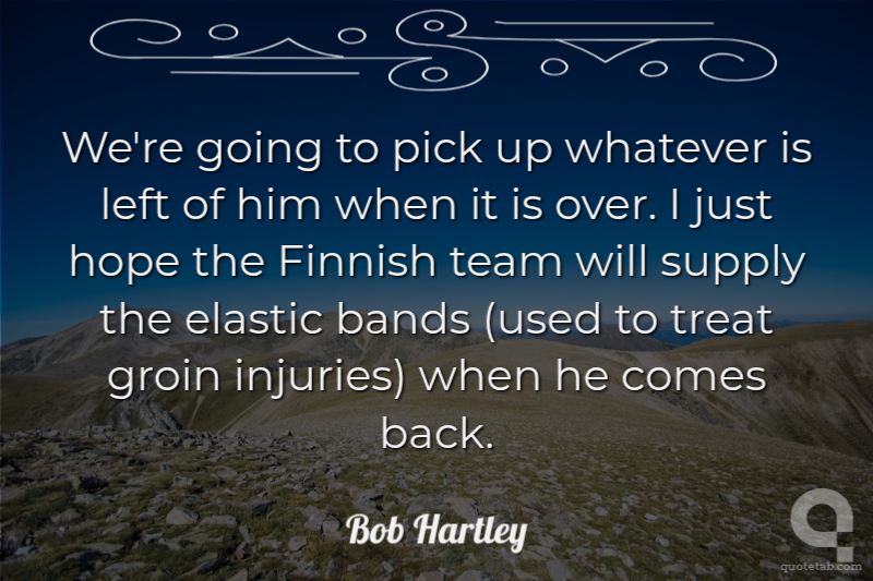 We're going to pick up whatever is left of him when it is over. I just hope the Finnish team will supply the elastic bands (used to treat groin injuries) when he comes back. Bob Hartley