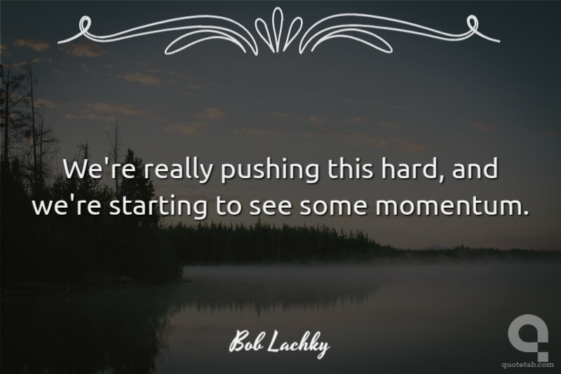 We're really pushing this hard, and we're starting to see some momentum. Bob Lachky