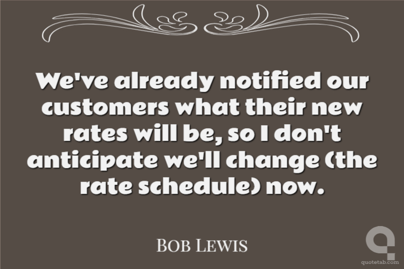 We've already notified our customers what their new rates will be, so I don't anticipate we'll change (the rate schedule) now. Bob Lewis