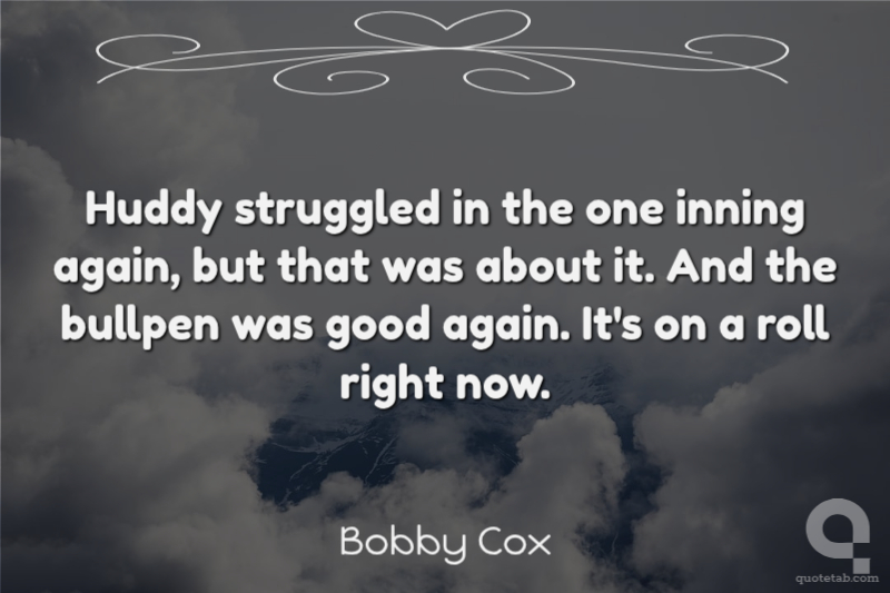 We struggled through it, ... Tomorrow, I'm back in the bullpen. Frank Robinson