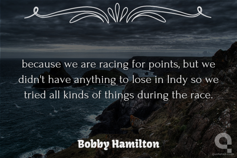 because we are racing for points, but we didn't have anything to lose in Indy so we tried all kinds of things during the race. Bobby Hamilton