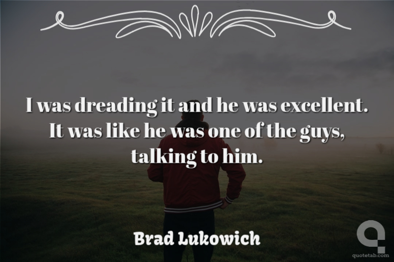 I was dreading it and he was excellent. It was like he was one of the guys, talking to him. Brad Lukowich