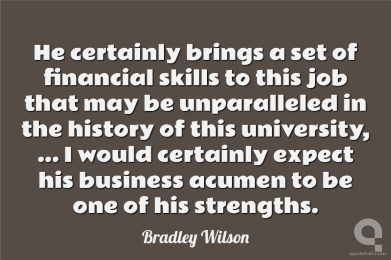 He certainly brings a set of financial skills to this job that may be unparalleled in the history of this university, ... I would certainly expect his business acumen to be one of his strengths. Bradley Wilson