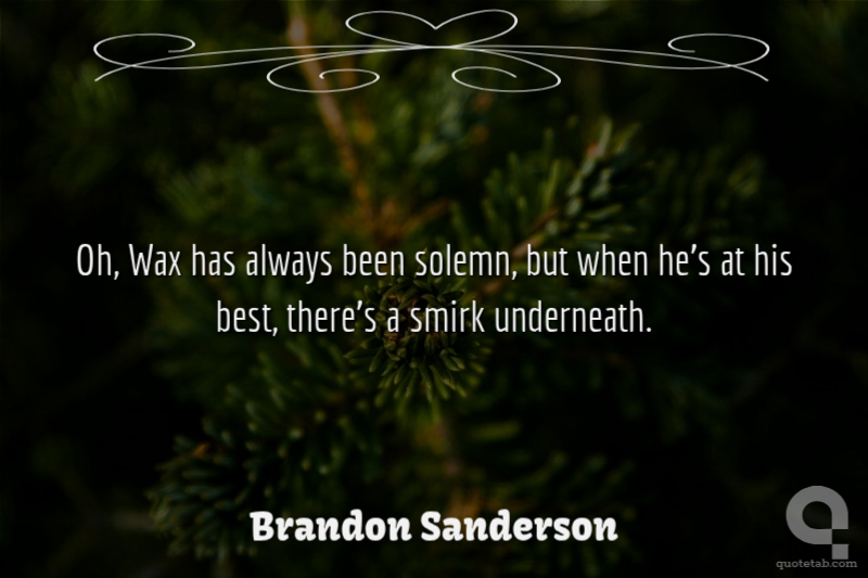 Oh, Wax has always been solemn, but when he's at his best, there's a smirk underneath. Brandon Sanderson