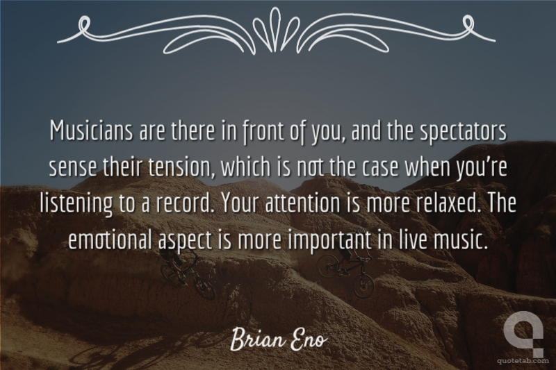 Musicians are there in front of you, and the spectators sense their tension, which is not the case when you're listening to a record. Your attention is more relaxed. The emotional aspect is more important in live music. Brian Eno