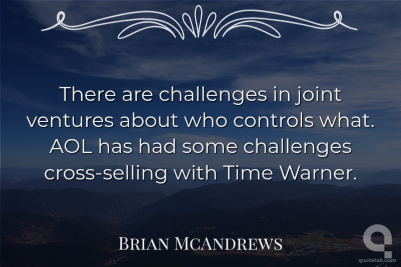 There are challenges in joint ventures about who controls what. AOL has had some challenges cross-selling with Time Warner. Brian McAndrews