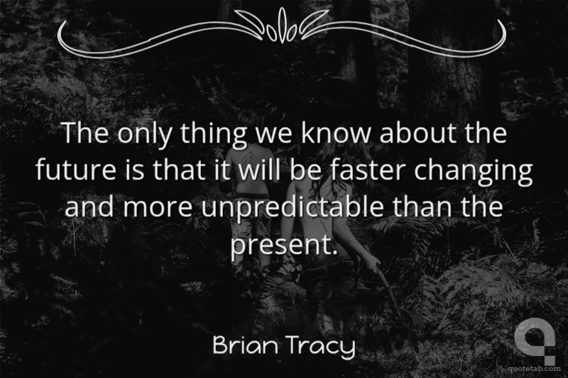 The only thing we know about the future is that it will be faster changing and more unpredictable than the present. Brian Tracy
