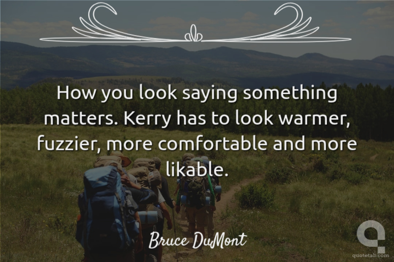 How you look saying something matters. Kerry has to look warmer, fuzzier, more comfortable and more likable. Bruce DuMont
