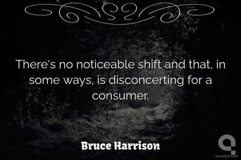 There's no noticeable shift and that, in some ways, is disconcerting for a consumer. Bruce Harrison